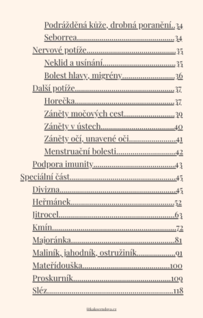 Celý e-book včetně tisknutelných karet Recepty k tisku s tabulkou Rychlý průvodce potížemi a bylinami dostaneš za 590 Kč. Za jednu průměrnou útratu v lékárně získáš průvodce, který ti bude sloužit roky. Mnohokrát ti pomůže ulevit nemocnému broučkovi od trápení a bude vám doma zase líp.