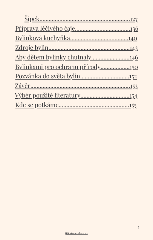 Nejsem žádná bylinkářka, ale ráda využiju nejprve přírodu a až pak lékárnu (pokud nejde o nic vážnějšího). E-book mě překvapil! Čekala jsem vhodné recepty, ale tolik dalších informací, tipů a přehledových tabulek už ne. Jítě se podařilo stvořit nepostradatelnou pomůcku pro kohokoliv, kdo chce z bylinek vytěžit co nejvíc, ale zároveň sám není odborník. Chválím detailní informace o dávkování pro různé váhové i věkové kategorie. A samozřejmě i to, že celý e-book prošel před vydáním rukama pediatričky.