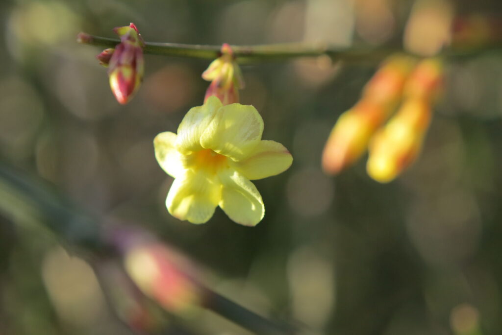 Jasmín nahokvětý (Jasminum nudiflorum) pochází z Tibetu a západní Číny. Může kvést už v prosinci. Narozdíl od jasmínu velkokvětého, tento druh léčivé účinky nevykazuje.
