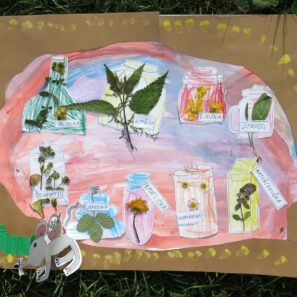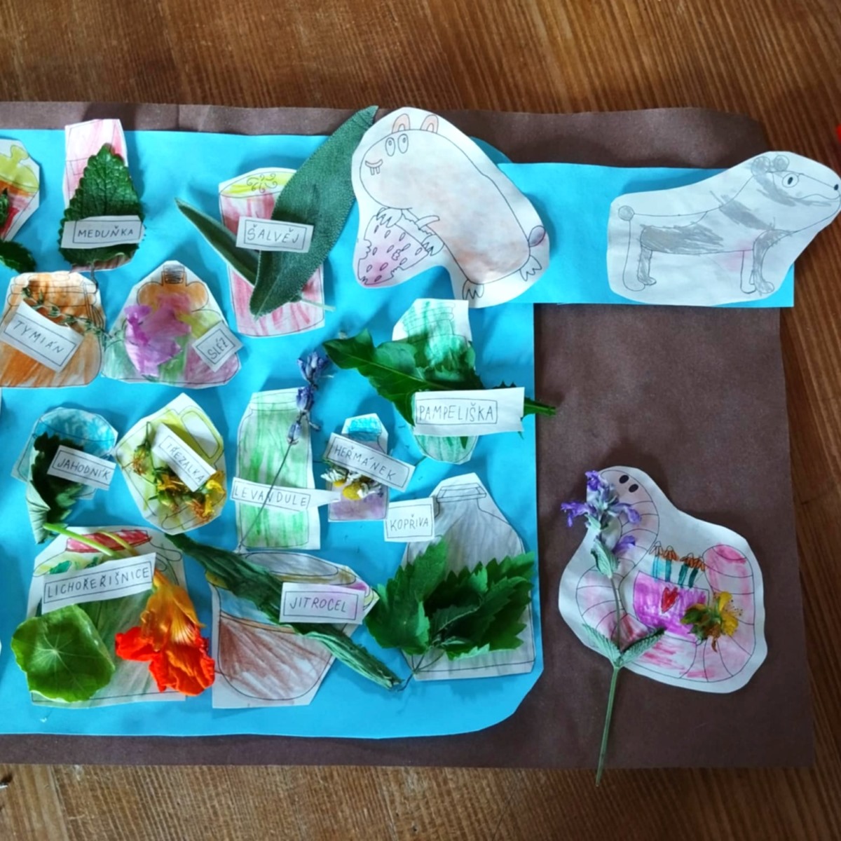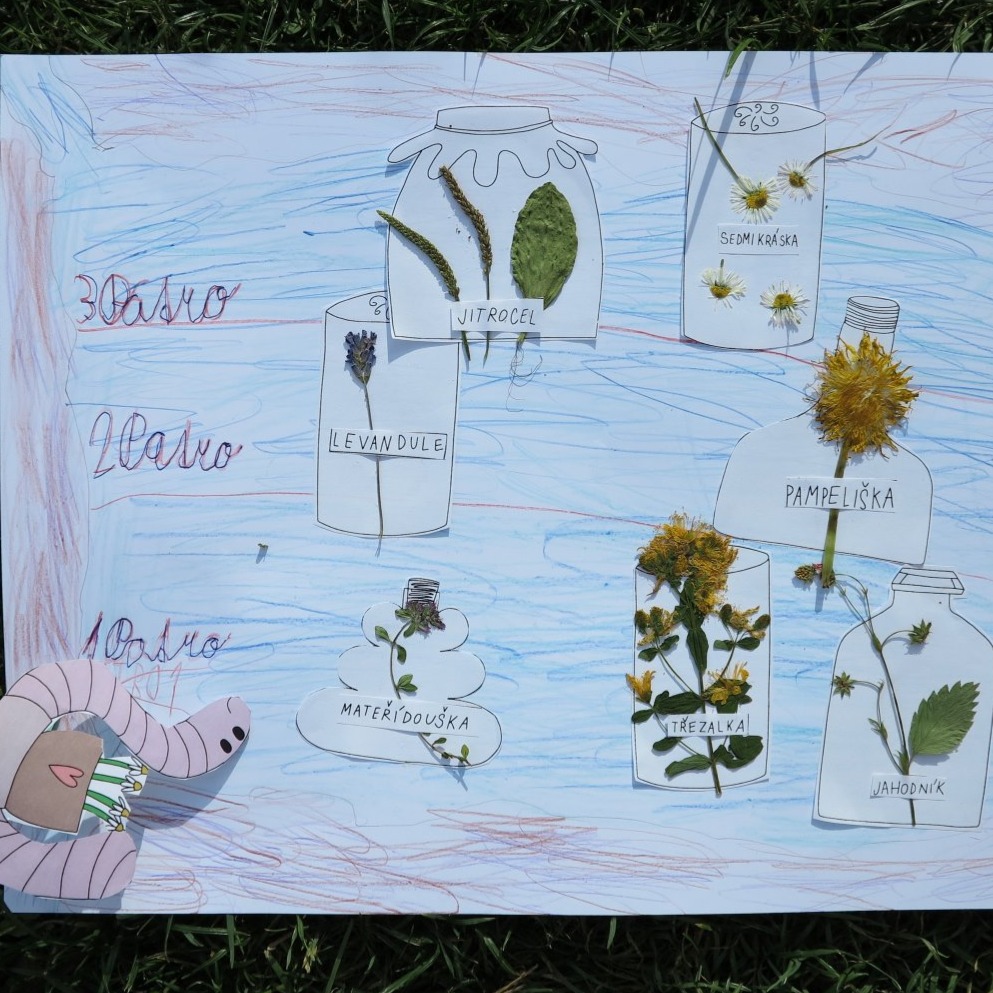 během aktivity si děti prostřídají několik dovedností, od hledání, rozpoznávání a odlišování bylin, přes stříhání, malování, lepení, až po vytváření příběhu